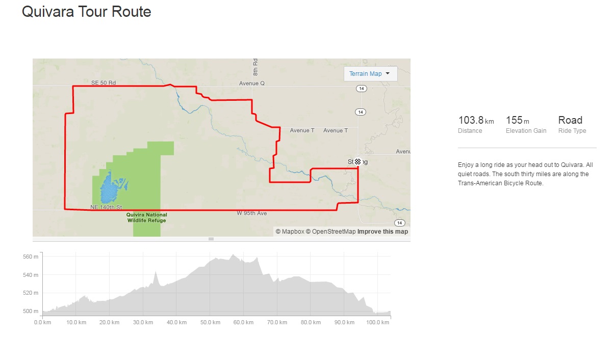 | Quivira National Wildlife Refuge Tour | 64.10 miles | Low | Quivira National Wildlife Refuge Tour Map (PDF) |